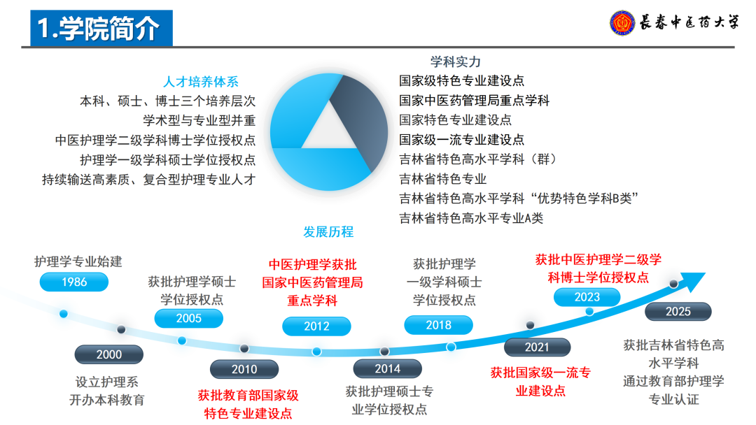 公司秉持“夯实西医基础,突出中医特色,强化人文素养”的培养理念,构建了本硕博贯通、学术型与专业型并重的高层次应用型护理人才培养体系。学科主要研究方向包括中医护理学、交叉护理学、健康与慢病管理学、成人与老年护理学。专业领域涵盖了中医护理、成人护理和护理管理。